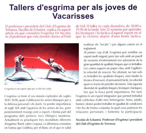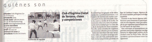 | Posem a la vostra disposició un seguit d'articles publicats a diferents mitjans que parlen sobre el nostre club. | Diari de Terrassa, 24 d'agost de 2006 |